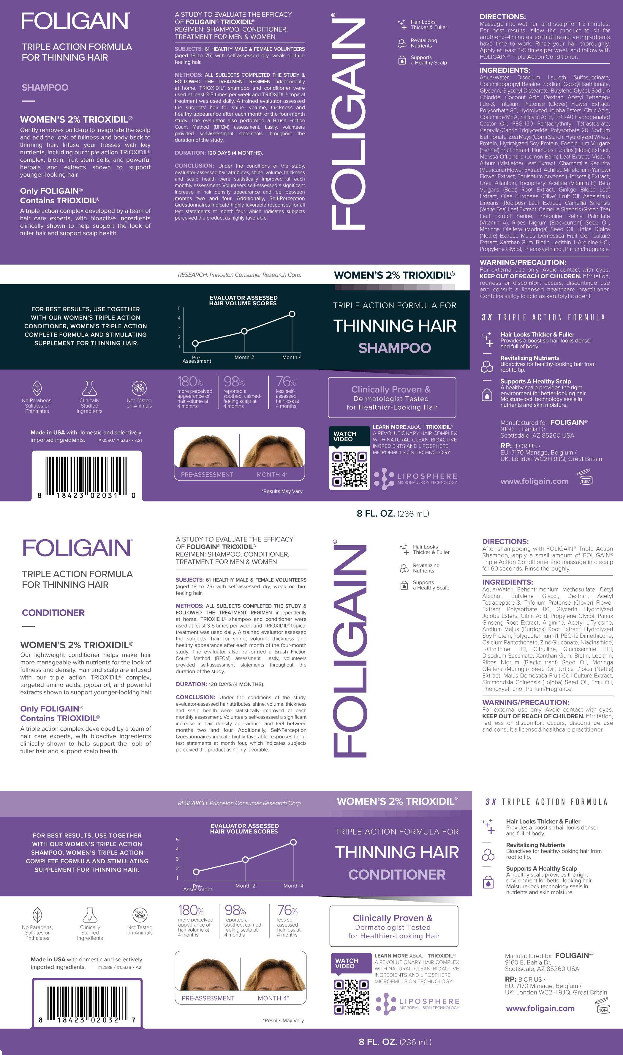 FOLIGAIN HAIR REGROWTH SHAMPOO For Women with 2% Trioxidil® (8oz) 236ml