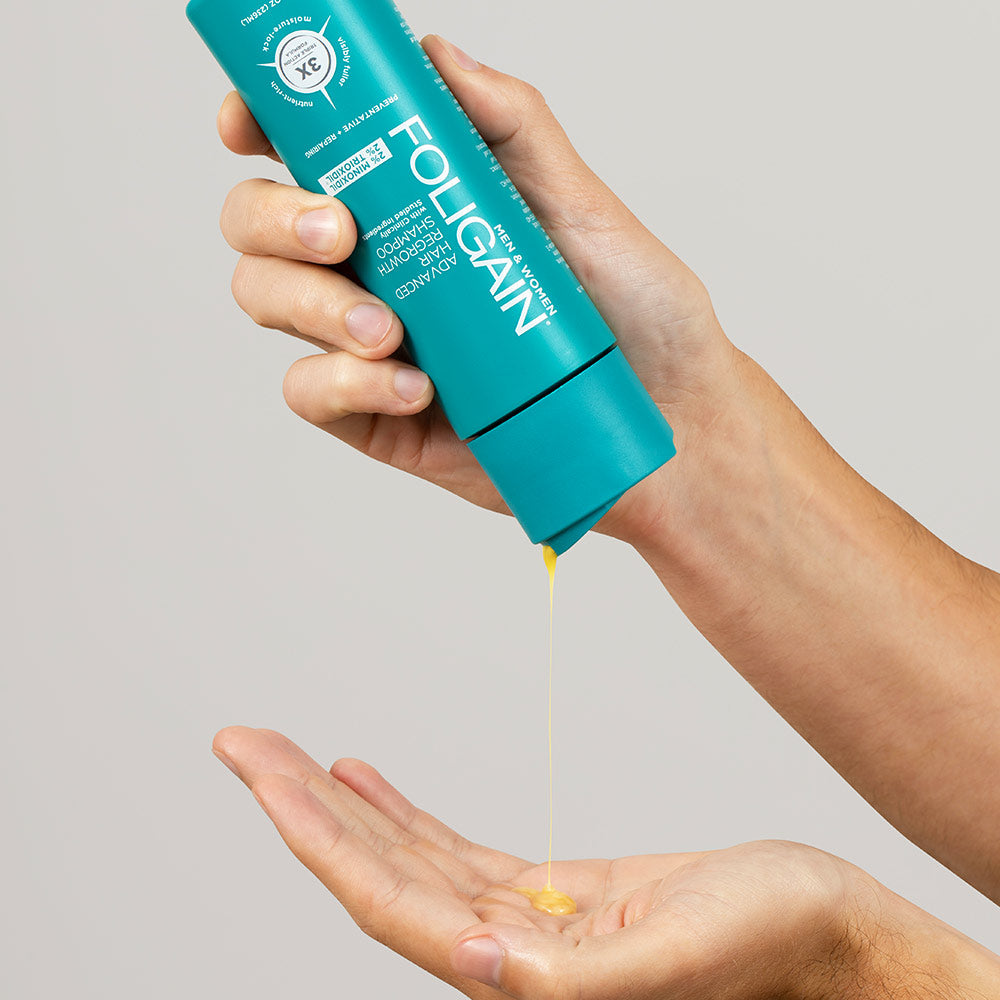 FOLIGAIN® Advanded Hair Regrowth Shampoo with 2% Minoxidil is expertly formulated for men and women suffering from hair loss or thinning hair. Our revolutionary formula is the first to combine clinically proven Minoxidil with Trioxidil®, a triple action hair regrowth complex that works fast to deliver fuller, thicker, and healthier-looking hair.